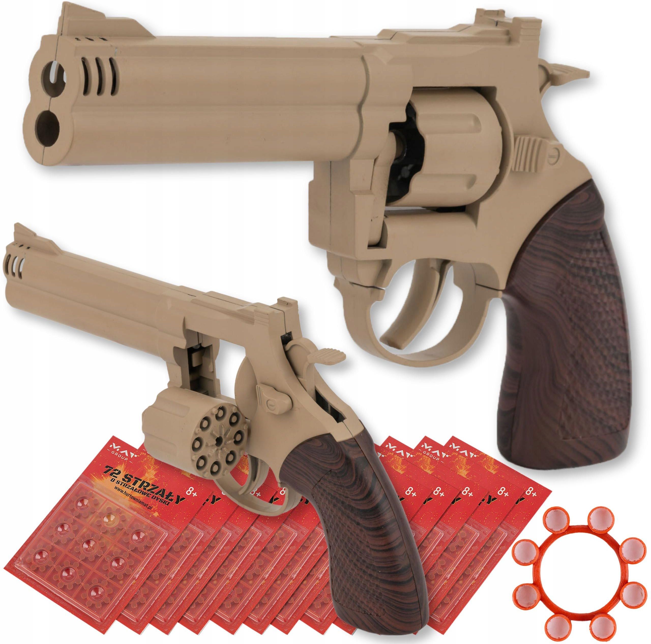 Pistolet na kapiszony hukowy metalowy MPS-C2003B spłonka 12x72 864 strzały Pistolet rewolwer na kapiszony MPS-C2003B — metalowa replika z 864 spłonkami Metalowy rewolwer na kapiszony MPS-C2003B to solidna, realistyczna replika pistoletu zaprojektowana jako rekwizyt i zabawka efektowa. Wykonana z metalu, oferuje trwałość i estetykę oraz wygodny chwyt dla użytkownika. Model jest przystosowany do używania z kapiszonami (spłonkami) — generuje efekt dźwiękowy bez płomienia, dzięki czemu sprawdza się w inscenizacjach, pokazach i bezpiecznej zabawie pod nadzorem dorosłych. Najważniejsze cechy Wykonanie: metalowy korpus i metalowy bębenek — zwiększona wytrzymałość oraz realistyczny wygląd. Pojemność: bębenek 8-komorowy (8 spłonek). Mechanizm otwierania: boczny przycisk do wysuwania i wymiany bębenka. Wymiary: długość około 18 cm, wysokość około 10 cm — kompaktowa i poręczna konstrukcja. Specyfikacja techniczna Model: MPS-C2003B Materiał: metal (korpus i bębenek) Pojemność bębenka: 8 spłonek Wymiary: ~18 cm (długość) × ~10 cm (wysokość) Funkcja: efekt hukowy przy użyciu kapiszonów (brak płomienia) Instrukcja użytkowania (krótkie kroki) Aby przygotować replikę do użycia, odblokuj bębenek za pomocą bocznego przycisku, wyjmij bębenek i umieść spłonki w każdej z komór zgodnie z instrukcją producenta. Po prawidłowym zamknięciu bębenka upewnij się, że mechanizm zablokował się, i skieruj replikę w bezpiecznym kierunku przed oddaniem strzału — zawsze wykonuj czynności zgodnie z zasadami bezpieczeństwa. Kapiszony — zawartość i wydajność W zestawie dostępne są kapiszony pakowane w 12 blisterów po 72 spłonki, co daje łącznie 864 strzały. Taka ilość zapewnia długie godziny zabawy, ćwiczeń inscenizacyjnych i pokazów. Spłonki należy przechowywać w oryginalnym opakowaniu, w suchym i chłodnym miejscu; stosuj jedynie kapiszony zgodne z instrukcją producenta i przeznaczone do tego typu replik. Bezpieczeństwo i ostrzeżenia Bezpieczeństwo najważniejsze: produkt jest repliką i zabawką emitującą efekt akustyczny. Nie jest przeznaczony dla dzieci bez nadzoru osób dorosłych; zalecany wiek użytkownika to zgodnie z lokalnymi przepisami (sprawdź opis produktu). Nie kieruj replik w stronę twarzy ani uszu osób, nie używaj w miejscach publicznych w sposób mogący wzbudzić niepokój lub panikę. Zalecane stosowanie ochrony słuchu w pobliżu ucha oraz przechowywanie kapiszonów z dala od ognia i źródeł ciepła. Co zawiera zestaw Metalowy rewolwer (replika) MPS-C2003B Metalowy bębenek / magazynek 8-komorowy 12 blisterów spłonek (72 szt. każdy) = 864 kapiszony Instrukcja obsługi i zasady bezpieczeństwa Słowa kluczowe (SEO): pistolet na kapiszony, rewolwer kapiszony metalowy, spłonka hukowa, kapiszony 864, MPS-C2003B, replika pistoletu, zabawka hukowa, rekwizyt kostiumowy, bezpieczne kapiszony.