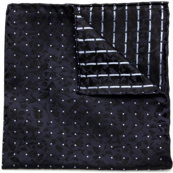 Poszetka jedwabna Willsoor Tkanina: 100% jedwab Kolor: ciemnogranatowa w czarne kwieciste wzory i jasne kropki Wymiary: 25 cm x 25 cm po rozłożeniu Opakowanie: kartonowe pudełko Willsoor Instrukcja składania poszetki znajduje się w pudełku! Poszetka jako ozdobna chusteczka wkładana do górnej kieszonki w garniturze stanowi idealne dopełnienie eleganckiego męskiego stroju. Posiada rolowany brzeg. Jasna poszetka pasuje do ciemnego garnituru wizytowego, w ciągu dnia można stosować poszetki kolorowe w tonacji zbliżonej do koloru krawata. Wzorzyste poszetki należy wkładać wyłącznie do gładkiego krawata. Poszetka Willsoor opakowana jest w eleganckie pudełko widoczne na zdjęciu.