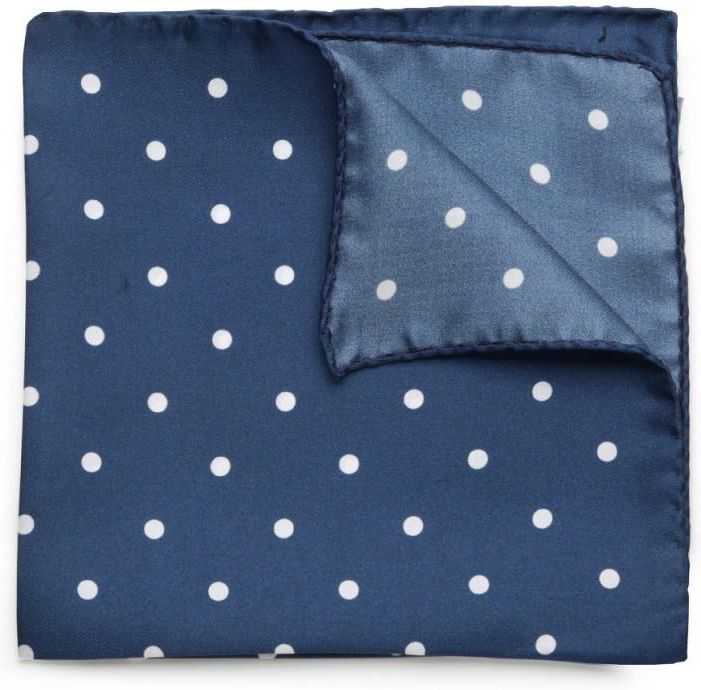 Poszetka jedwabna Willsoor Tkanina: 100% jedwab Kolor: granatowa w białe groszki Wymiary: 25 cm x 25 cm po rozłożeniu Opakowanie: kartonowe pudełko Willsoor Poszetka jako ozdobna chusteczka wkładana do górnej kieszonki w garniturze stanowi idealne dopełnienie eleganckiego męskiego stroju. Posiada rolowany brzeg. Jasna poszetka pasuje do ciemnego garnituru wizytowego, w ciągu dnia można stosować poszetki kolorowe w tonacji zbliżonej do koloru krawata. Wzorzyste poszetki należy wkładać wyłącznie do gładkiego krawata. Poszetka Willsoor opakowana jest w eleganckie pudełko widoczne na zdjęciu.