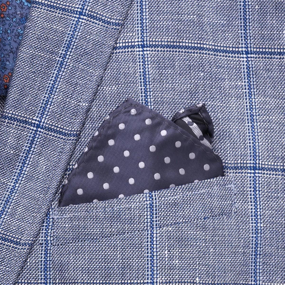Poszetka Willsoor Poszetka jako ozdobna chusteczka wkładana do górnej kieszonki w garniturze stanowi idealne dopełnienie eleganckiego męskiego stroju. Jasna poszetka pasuje do ciemnego garnituru wizytowego, w ciągu dnia można stosować poszetki kolorowe w tonacji zbliżonej do koloru krawata. Wzorzyste poszetki należy wkładać wyłącznie do gładkiego krawata. Poszetka Willsoor opakowana jest w eleganckie pudełko widoczne na zdjęciu. - Tkanina: 100% microfibra - Kolor: granatowa w białe groszki - Wymiary: 23 cm x 23 cm po rozłożeniu - Uszyta w Polsce