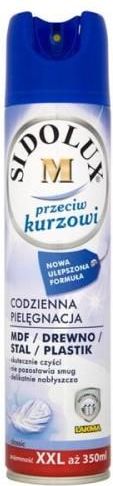 SIDOLUX Mnbsp;spray przeciw kurzowi 350 mlnbsp; Sidolux M ndash; kwiatowy do pielęgnacji i czyszczenia mebli. Nadaje się do wszystkich powierzchni, zaroacute;wno matowych jak i błyszczących. Doskonale czyści; nie spływa z pionowych powierzchni; zawiera naturalne woski; pozostawia przyjemny, …