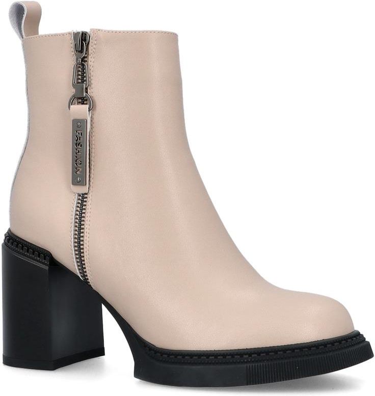 Skórzanebotki na platformie pochodzące z kolekcji marki FILIPPO. Idealna propozycja na zbliżający się wielkimi krokami sezon jesienno-zimowy. Botki wykonano z najwyższej jakości skóry licowej w pięknym beżowym kolorze. Od wewnętrznej strony cholewki zastosowano suwak, umożliwiający zakładanie obuwia. Suwak po zewnętrznej stronie buta to ozdoba. Wnętrze botków wykonano z tkaniny ocieplającej, miękkiej oraz przyjemnej w dotyku. Dzięki czemu botki sprawdzą się idealnie w chłodniejsze dni. Obcas słupek 9,5 - centymetrowy gwarantuje wygodę podczas codziennego użytkowania. Dodatkowo botki posiadają 2,5 - platformę. Klasyka, której nie może zabraknąć w Twojej szafie! Uniwersalne beżowe botki to doskonały wybór w jesienno-zimowe dni lub wieczory. Idealnie sprawdzą się ze spodniami czy też z sukienkami. Te eleganckie botki to doskonały wybór do pracy czy też na rodzinne spotkania. Dzięki uniwersalnemu fasonowi, bez problemu będzie współgrać z twoją garderobą. Chcąc dopełnić swoją stylizację, koniecznie zapoznaj się z naszą szeroką ofertą torebek i wybierz dla siebie tę jedyną!