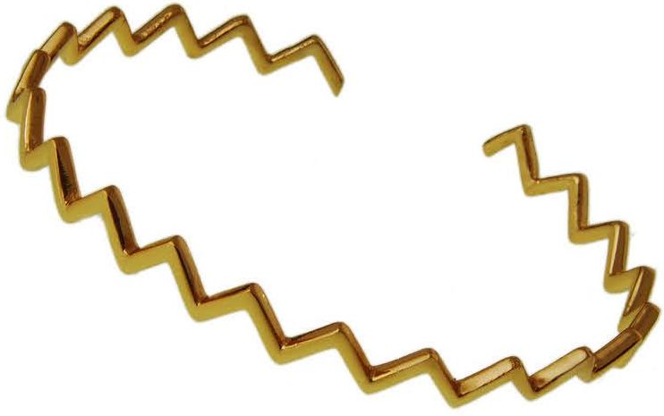 Elegancka wykonana z pozłacanego żółtym złotem srebra otwarta bransoleta o okrągłym kształcie, swoim wzorem przypominająca zygzak, model B0930.