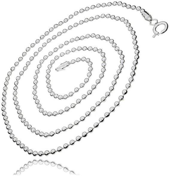 Elegancki, wykonany ze srebra łańcuszek o splocie kulkowym o grubości 2,2mm i długości 45cm, model CPL22. Łańcuszek ze względu na swoją grubość, doskonale nadaje się do noszenia na nim nieśmiertelników. Kuleczki są polerowane na wysoki połysk, dzieki czemu łańcuszek lśni w świetle.