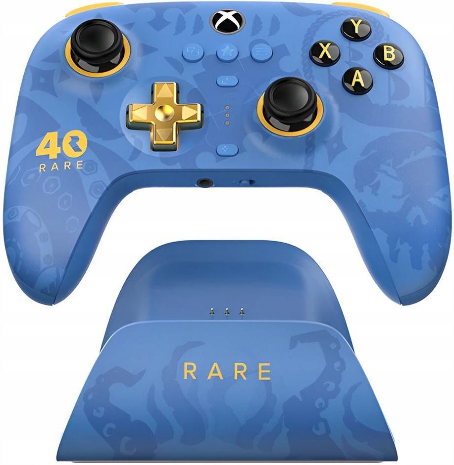 Bezprzewodowy Kontroler 8BitDo Ultimate 3-mode Rare 40th Anniversary Edition Kolor: Niebieski Świętuj 40 lat doskonałości w świecie gier z kontrolerem 8BitDo Ultimate 3-Mode – Rare 40th Anniversary Edition. Oficjalnie licencjonowany przez Xbox i Rare Ltd., ten limitowany model oferuje bezprzewodowe połączenie 2.4G, drążki z czujnikami Hall Effect, metalowy złoty D-pad, tylne przyciski Pro oraz pełną personalizację w oprogramowaniu 8BitDo UltimateSoftware. To prawdziwy hołd dla historii gamingu. 40 lat kreatywnej doskonałości Od 1985 roku studio Rare kształtuje pokolenia graczy, niosąc wyobraźnię, zachwyt i radość. Ten kontroler świętuje nie tylko samo studio — lecz jego dziedzictwo. Z każdym naciśnięciem przycisku trzymasz w dłoniach kawałek historii gier wideo. „Legendy narodzone w 1985 roku — od pikseli po poligony, od małp po piratów — dekady pełne radosnych światów czekają na Ciebie. Weź kontroler w dłoń i przygotuj się na kolejną przygodę…” — 40 lat Rare Legendarny Zestaw na Czterdzieści Lat Gier od Rare 8BitDo łączy siły z Rare, aby uczcić 40 lat kultowych postaci i niezapomnianych światów. Ta specjalna edycja, utrzymana w charakterystycznej niebiesko-złotej kolorystyce, została zaprojektowana z myśląo fanach klasycznych gier. Zawiera symboliczne wzory, sylwetki inspirowane kultowymi tytułami oraz ukryte „Easter eggi” – to prawdziwy hołd dla dziedzictwa, które Rare wnosi do świata gier. Idealna dla kolekcjonerów i graczy, którzy chcą poczuć magię klasyki w nowoczesnym wydaniu. Ultimate Design i Optymalne Doświadczenie Gamingowe Nowoczesny kontroler, który szanuje klasykę – każdy detal dopracowany z myślą o graczach. Idealne połączenie klasycznych i nowoczesnych elementów rozgrywki. Wbudowana Stacja Ładowania Wbudowana stacja ładowania zapewnia, że Twój kontroler jest zawsze gotowy do gry. Po wyjęciu z docka łączy się automatycznie, abyś mógł natychmiast kontynuować rozgrywkę. Joysticki Hall Effect i Triggery Impulsowe Ulepszone pod kątem precyzji. Joysticki odporne na dryf w połączeniu z triggerami impulsowymi w stylu Xbox zapewniają bardziej wyrafinowane wibracje i lepsze wyczucie kontroli podczas gry. Profesjonalne Tylne Przyciski Zaprojektowane, aby oszczędzać czas i wysiłek podczas intensywnej rozgrywki. Złoty Metalowy Krzyżak (D-pad) Wykonany ze stopu cynkui pokryty złotą powłoką, co znacznie poprawia wrażenia dotykowe podczas gry. Custom Profile Switch Trzy profile, możliwość szybkiego przełączania się. Maksymalna Kompatybilność i Bezprzewodowa Gra na Xbox Stworzony do gry międzyplatformowej. Podłącz kontroler do Xbox lub komputeraz Windowsprzez bezprzewodowe 2,4 GHz lub przewodowo przez USB, a do urządzeń Apple i Android – przez Bluetooth. Specyfikacja Specjalne funkcje Bezprzewodowa łączność z Xbox Dwa profesjonalne tylne przyciski dla większej kontroli Gniazdo audio 3,5 mm (standard CTIA) Spusty impulsowe i wibracje (obsługiwane na Xbox i Windows) Przełącznik profili użytkownika – szybkie zmiany ustawień w locie Kompatybilność z oprogramowaniem 8BitDo Ultimate Software X Oficjalna licencja Xbox Joysticki i spusty Hall Effect – większa precyzja i trwałość Tryby kontrolera Xbox / Windows: bezprzewodowo 2,4 GHz lub przewodowo przez USB Apple / Android: przez Bluetooth Bateria i czas pracy Typ baterii: akumulator litowo-jonowy 1000 mAh Czas pracy: do 20 godzin gry po 4 godzinach ładowania Wymiary i waga Wymiary: 147.0 × 104.0 × 61.5 mm Waga: 250 g Długość kabla: 8.2 ft / 2.5 m Łączność Xbox Series / Xbox One: bezprzewodowo 2,4 GHz lub przewodowo (USB) Windows 10 / 11: bezprzewodowo 2,4 GHz lub przewodowo (USB) Urządzenia Apple i Android: Bluetooth Audio: gniazdo 3,5 mm (standard CTIA)