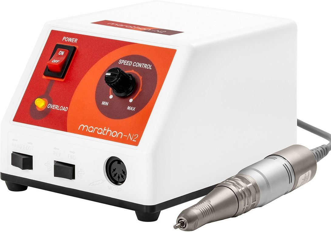 Marka Saeyang posiada w swojej ofercie wysokiej jakości narzędzia przydatne podczas wykonywania profesjonalnych zabiegów manicure oraz pedicure. Produkty Saeyang, cenione w gronie kosmetologów, charakteryzują się doskonałą jakością wykonania, precyzją oraz zastosowaniem innowacyjnych rozwiązań. Profesjonalne urządzenie do zabiegów manicure i pedicure Frezarka Saeyang Marathon N2 Retro to funkcjonalne urządzenie umożliwiające precyzyjne opracowywanie paznokci i skórek oraz ich właściwe przygotowanie do kolejnych etapów zabiegu. Urządzenie znacząco usprawnia usuwanie pozostałości wcześniejszych stylizacji. Odpowiednie wyważenie głowicy, kompaktowe wymiary oraz dopracowane rozwiązania konstrukcyjne sprawiają, że frezarka sprawdza się zarówno w użytku profesjonalnym, jak i domowym. Praktyczna głowica H200 Funkcjonalna, precyzyjna głowica doskonale leży w ręce, co gwarantuje wysoki komfort pracy. Wyposażona jest w prosty w obsłudze system Twist-Lock, który pozwala na szybką i płynną wymianę frezów. Dzięki temu praca z urządzeniem jest wyjątkowo łatwa oraz intuicyjna, co zostanie docenione również przez bardziej wymagających użytkowników. Element jest odpowiednio wyważony i ergonomicznie wyprofilowany, a dodatkowo drgania głowicy zostały ograniczone, dzięki czemu nawet wielogodzinna praca z frezarką nie męczy nadmiernie ręki. Pełna kontrola pracy Bezstopniowa regulacja prędkości do 30 000 obrotów na minutę zapewnia elastyczność pracy i komfort wykonywania różnorodnych zabiegów. Możliwość zmiany obrotów i sterowania - przełącznik z przodu urządzenia. Płynna zmiana kierunku obrotów z wbudowaną pauzą zapewnia bezpieczne przejście między pracą w obu kierunkach. Zabezpieczenie przed przeciążeniem z ostrzegawczym sygnałem LED chroni silnik przed przegrzaniem, co zapewnia większe bezpieczeństwo pracy oraz chroni przed uszkodzeniem urządzenia. Kompaktowe urządzenie w stylu retro Frezarka Saeyang Marathon N2 Retro o niewielkich gabarytach łączy wysoką funkcjonalność z dopracowaną estetyką. Obudowa utrzymana w stylistyce retro, w odcieniach bieli i pomarańczu, nadaje urządzeniu charakterystyczny i przyciągający wzrok wygląd. Dodatkowo frezarka została wyposażona w gumowane stopki, które zapewniają stabilne ustawienie oraz chronią blat przed ewentualnymi uszkodzeniami. Frezarka doskonale sprawdza się w codziennej pracy, oferując komfort użytkowania przy każdym zabiegu manicure i pedicure. W zestawie: baza frezarki, głowica, zasilacz. Dane: Kolor obudowy: odcienie bieli i pomarańczu Prędkość obrotowa: 30 000 RPM Głowica z mechanizmem Twist-Lock Zasilanie: przewodowe Moc głowicy: 45 W Napięcie wejściowe: 110-220 V Gwarancja: 12 miesięcy