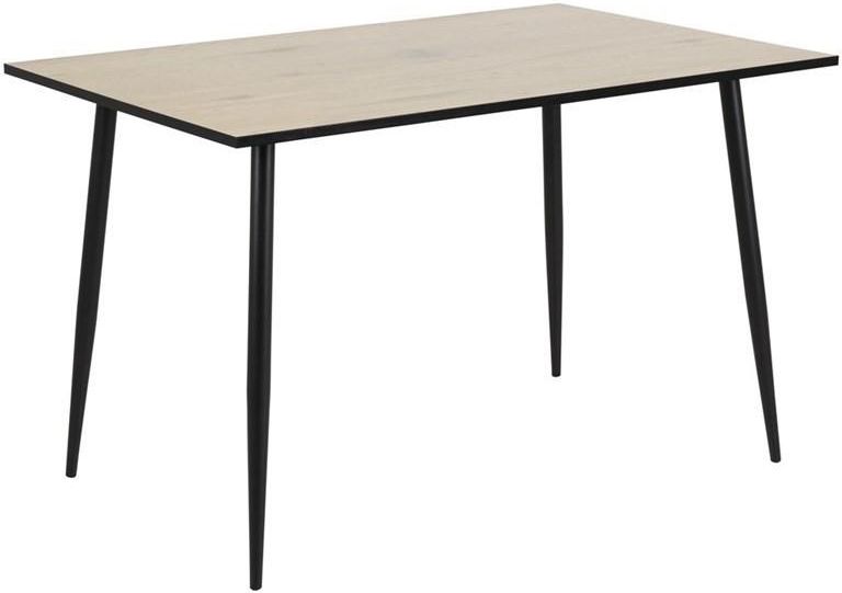 Actona Stół Jadalniany Wilma Biały Dąb Prostokątny stół jadalniany Wilma, z jasnym blatem, na czarnych metalowych nogach. Wymiary Szerokość (cm): 120 Wysokość (cm): 75 Głębokość (cm): 80 Dane techniczne Montaż: Do samodzielnego montażu Kolor: Naturalny Material: MDF Kolor nóg/podstawy: Czarny mat …