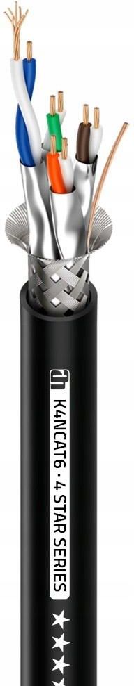 Adam Hall K5NCAT7 Kabel sieciowy ethernet kat.7a (S/FTP) PUR Wyjątkowo elastyczny kabel Cat.7a z SERII 5 STAR jest idealny do systemów Ethernet, cyfrowego dźwięku, transmisji lub DMX 512. Kabel ten zapewnia wysoką wydajność przy małej średnicy. Specjalnie wykonana kurtka PUR jest szczególnie trwała i nadaje się do ekstremalnych warunków. Dzięki cyklom zginania sięgającym nawet milion razy doskonale nadaje się do trudnych, codziennych zastosowań. Poszczególne pary przewodów można montować na dowolnym standardowym RJ-45, a także lutować na dowolnym XLR. Wykonane są z wysokiej jakości miedzi beztlenowej (OFC) i mają przekrój poprzeczny 0,14 mm². Dla wszystkich, którzy szukają najlepszego możliwego kabla Cat.7, najprawdopodobniej właśnie go tutaj znaleźli! Dane techniczne Powłoka kabla: PUR (Poliuretan) Średnica kabla: 6,3 mm Kolor kabla: Czarny Standard CAT: Cat.7a Materiał przewodnika: Miedź beztlenowa (OFC) Średnica żyły: 4 x 2 x 0,14 mm² AWG: 26 Impedancja przewodnika/km: 100 Ohm Struktura ekranująca: S/FTP Waga: 136 g