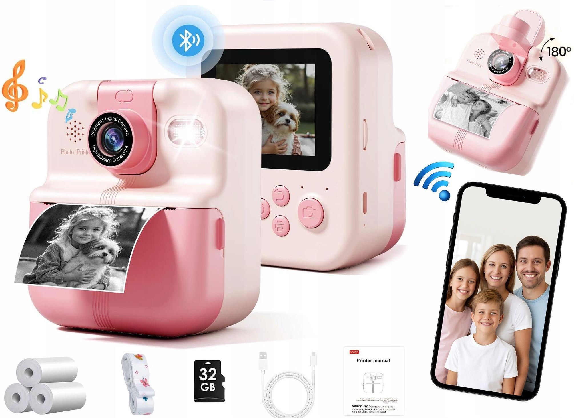 Aparat Natychmiastowy dla dzieci Innowacyjny - Obrotowy obiektyw 180° - idealny do selfie Bluetooth + aplikacja WalkPrint - edytuj i drukuj z telefonu 48 MP / 1080p HD - wysoka jakość zdjęć i filmów Drukowanie termiczne - zdjęcia gotowe w kilka sekund Gry i muzyka MP3 - dodatkowa rozrywka …