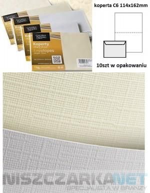 Koperta Holland biały C6 faktura grubo tkanego płótna format: C6 gramatura: 120g/m2 ilość: 10 sztuk w opakowaniu dostępna w kolorach: biały, kremowy z paskiem samoprzylepnym Eleganckie koperty do korespondencji oraz kartek okolicznościowych.