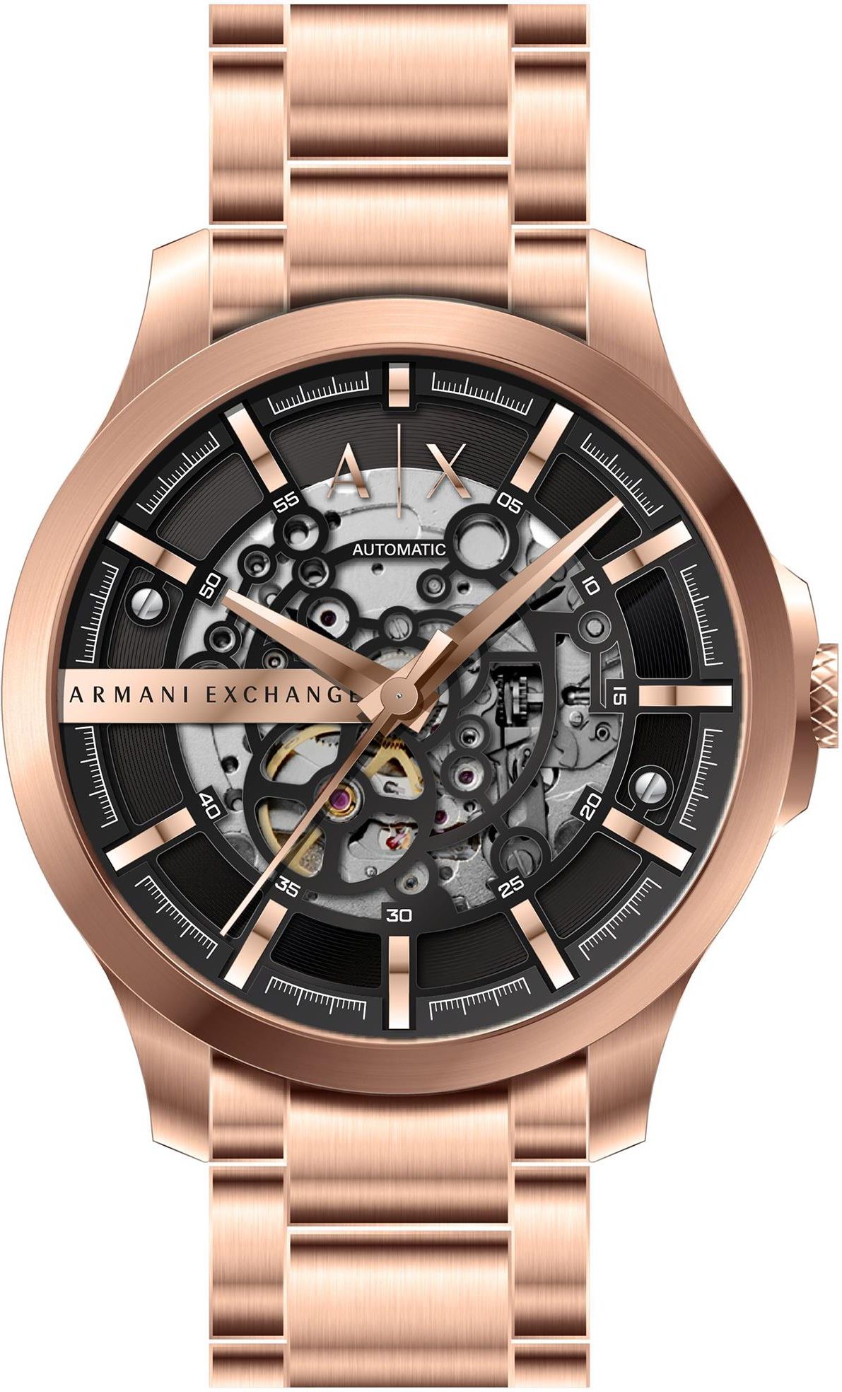 MĘSKI ZEGAREK ARMANI EXCHANGE AX2456 HAMPTON AUTOMATIC RÓŻOWE ZŁOTO 50M Fabrycznie nowy, oryginalny zegarek Armani Exchange HAMPTON AX2456 jest propozycją od znanej i cenionej marki. Wyposażony w precyzyjny mechanizm automatyczny, zegarek działa dzięki naturalnym ruchom ręki użytkownika, co eliminuje konieczność wymiany baterii. Specyfikacja zegarka: Mechanizm: automatyczny. Mechanizm czerpie energię z ruchu ręki. Możliwość ręcznego nakręcania. Zegarek nie wymaga wymiany baterii, dzięki pracy automatycznego naciągu Koperta: wykonana ze stali szlachetnej wysokiej jakości, która charakteryzuje się najwyższym stopniem odporności na korozję Szkiełko: szkiełko mineralne - wysokiej jakości, które jest odporne na zarysowania - płaskie Bransoleta: wykonana ze stali szlachetnej wysokiej jakości, która charakteryzuje się najwyższym stopniem odporności na korozję Wodoszczelność: klasa wodoszczelności - 5ATM. Odporny na deszcz i zachlapania Kolorystyka: koperta: różowe złoto tarcza: czarna bransoleta: różowe złoto wskazówki: różowe złoto Dla entuzjastów zegarmistrzostwa wyjątkowym akcentem jest częściowo transparentna tarcza, która pozwala podziwiać finezyjną pracę mechanizmu. Czasomierz posiada stalową bransoletę świetnie pasującą do eleganckiego stylu. Do zegarka dołączone zostało eleganckie, markowe pudełko w kolorze czarnym, które doskonale sprawdzi się jako opakowanie na prezent. Wymiary: koperta : szerokość 48mm, wysokość 54mm tarcza : średnica 40mm szerokość bransolety: 22mm grubość zegarka: 10mm obwód zegarka do 20cm (możliwość skrócenia) W zamówieniu otrzymasz fabrycznie nowy i oryginalny zegarek oryginalne pudełko kartę gwarancyjną wraz z potwierdzeniem zamówienia książeczkę od producenta (jeżeli takową producent załączył)