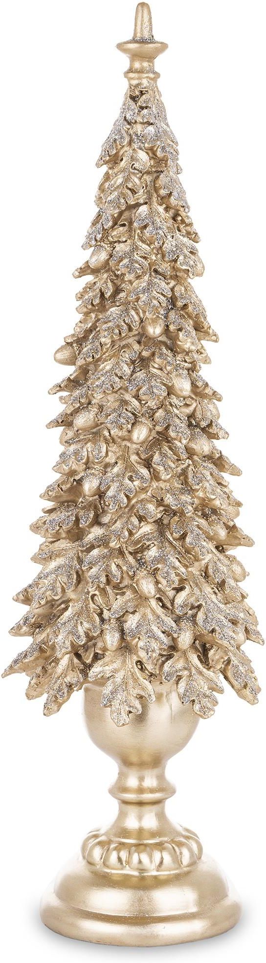 Złota choinka dekoracyjna na podstawce | 56x16 cm | Styl glamour | Tworzywo sztuczne Dodaj do swojego wnętrza elegancji i świątecznego blasku dzięki tej imponującej złotej choince dekoracyjnej. Wykonana z trwałego tworzywa sztucznego, zachwyca bogatymi detalami i efektownym, połyskującym …