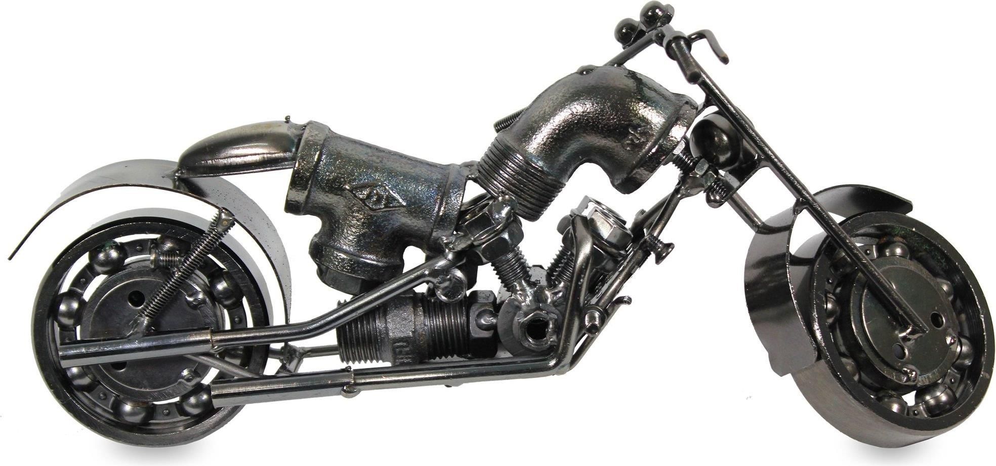 Metalowa replika motoru jest idealną ozdobą do salonu, biura czy też warsztatu. Efektowna figurka wykonana została z różnego rodzaju metalowych śrubek, drutów, podkładek, nakrętek i łożysk . Doskonały pomysł na prezent dla motocyklisty! Pl Motocykl Metalowy Art-pol Rozmiar: 14x30x11 Pakowanie: 1 …
