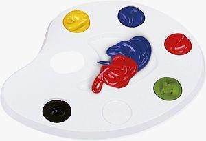 Paletka malarska do mieszania farb wykonana z tworzywa sztucznego. Posiada 6 wgłębień na farby, wygodny uchwyt oraz miejsce do odłożenia pędzelka. Wygodny uchwyt powoduje, że bardzo łatwo jest trzymać ją w poziomie. Nadaje się zarówno dla profesjonalnych malarzy jak i dla amatorów i dzieci.