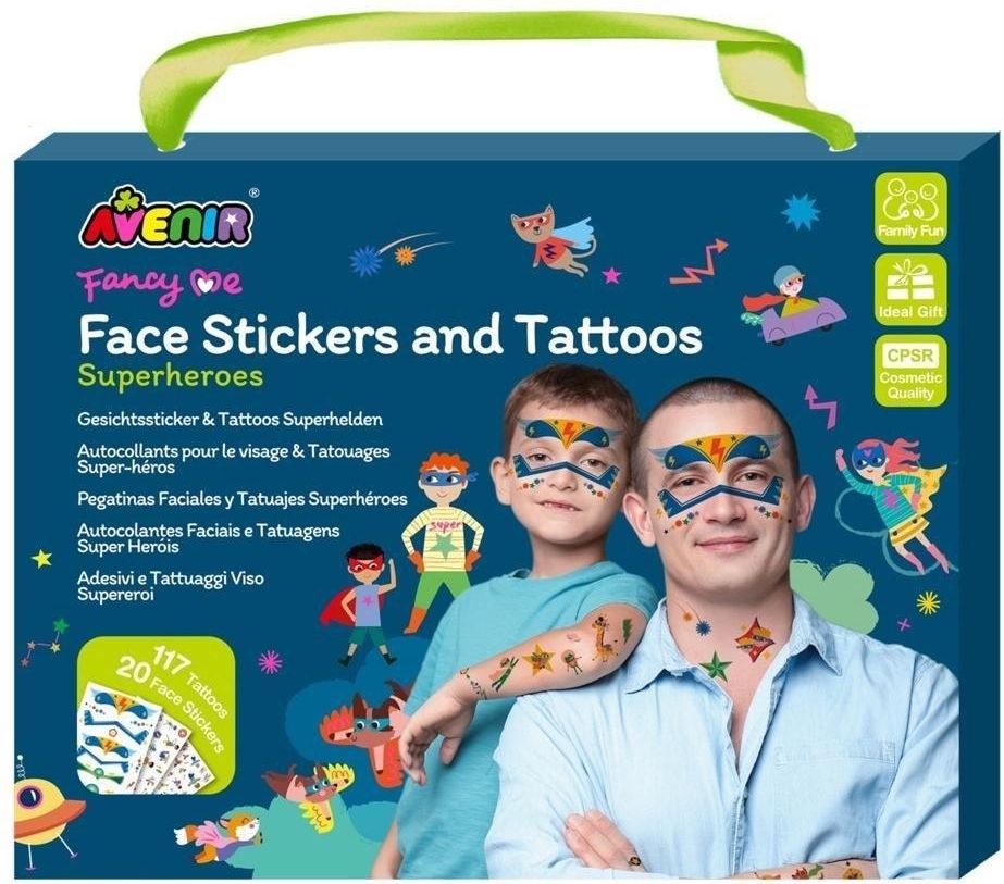 Naklejki do ciała i tatuaże - Superbohaterowie Naklejki do ciała i tatuaże to wspaniały zestaw, który jednoczy całe rodziny. Idealny na przyjęcia oraz do wszelkiego rodzaju aktywności i przebieranek. Wszystkie naklejki do ciała i tatuaże spełniają standardy kosmetyczne (certyfikat CPSR) i są łatwe w użyciu i usuwaniu. Przygotuj się na wspólną zabawę i super stylizację! Dla dzieci powyżej 3-go roku życia. Zestaw zawiera 117 sztuk tatuaży oraz 20 sztuk wspaniałych naklejek do ciała. Informacje o produkcie Nr katalogowy NA248211 Rodzaj Tatuaże Wymagania wiekowe od 3 lat Płeć Chłopcy Dziewczynki Kolor Wielokolorowy Akcesoria w zestawie 117 tatuaży 20 naklejek Oznaczenia