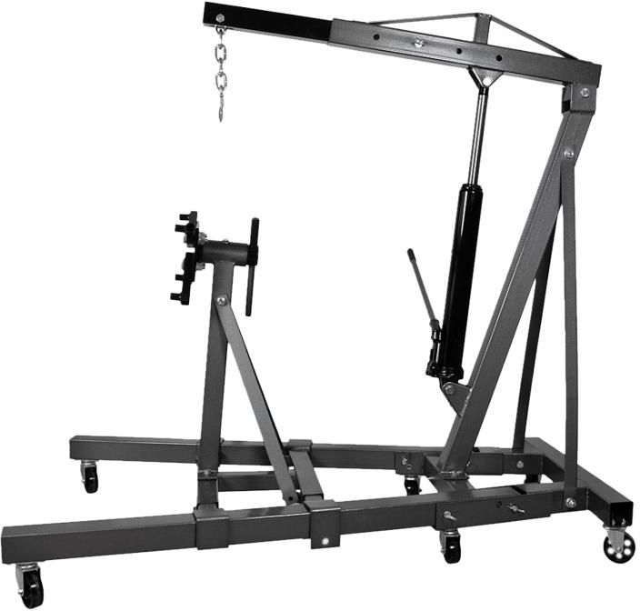 Wykonany ze stali narzędziowej o wysokiej wytrzymałości, malowany proszkowo. Posiada 6 łożyskowanych kółek które ułatwiają manewrowanie. Możliwość regulowania wysuwu ramienia w 4 pozycjach: 2T, 1 1/2T, 1T, 1/2T Hydrauliczne podnoszenie/ opuszczanie za pomocą za dźwigni. Wysuwane nogi dla lepszej stabilności. Na końcu ramienia łańcuch z hakiem. Składana konstrukcja. Przeznaczony do podnoszenia i opuszczania skrzyń biegów, silników, sprzęgła, etc. Niezbędny w każdym warsztacie. Dane techniczne żurawia: Udźwig: 2000 kg Zakres podnoszenia: 1450-2380 mm Zasięg ramienia: 1220 mm Wysokość całkowita: 1550 mm Dane techniczne stojaka: Udźwig: 900 kg Wysokość: 880 mm Waga zestawu: 105 kg
