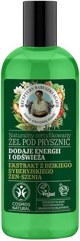 RECEPTURY BABUSZKI AGAFII Naturalny żel pod prysznic energetyzująco-tonizujący 260 ml Naturalny energetyzujący żel pod prysznic z ekstraktami z dzikiego żeń-szenia, mięty i świerku. Ekstrakt z dzikiego żeń-szenia syberyjskiego, dzięki wysokiej zawartości witamin z grupy A, C, D, E, B, świetnie …