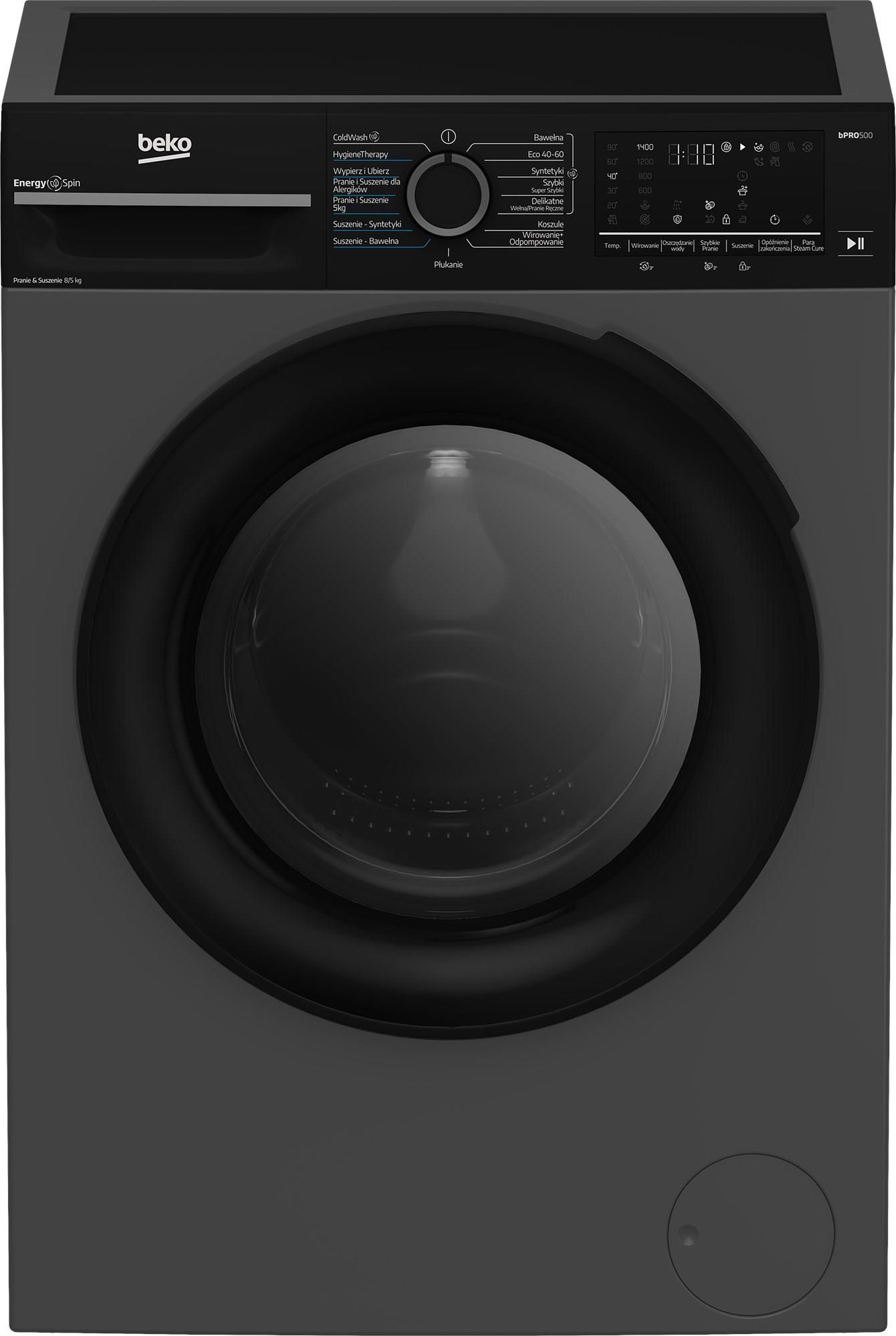 BM5DFT6844MSDC: Pralko-suszarka wolnostojąca (8 kg / 5 kg, 1400 obr/min) EnergySpin Oszczędność do 35% energii prawie na każdym programie prania Poprzez innowacyjne obroty bębna w pralkach Beko z funkcją EnergySpin rozpuszczanie detergentu jest przyspieszone, zapewniając nieskazitelne rezultaty …