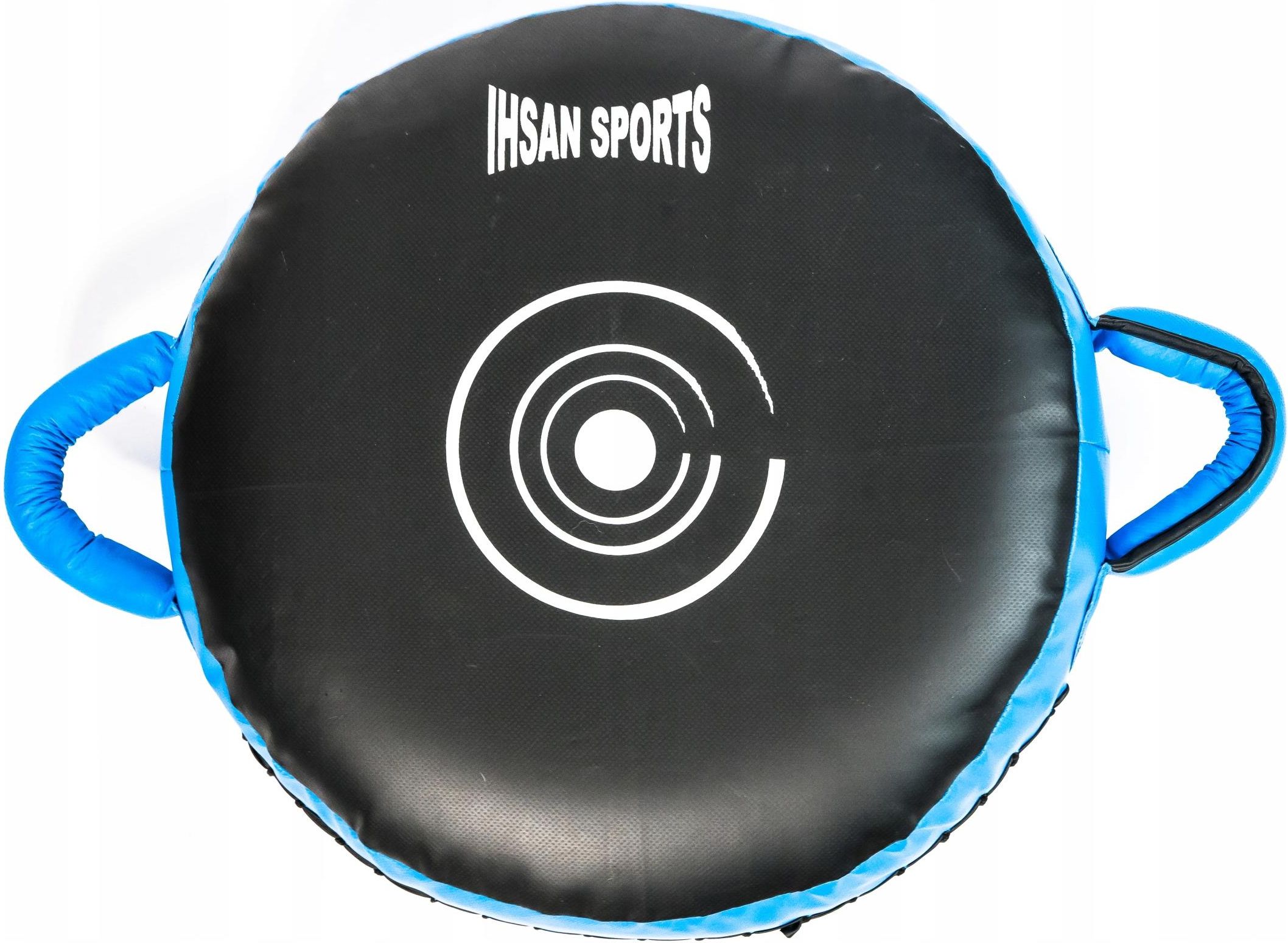Okrągła Tarcza DUŻA Treningowa IHSAN SPORTS kolor jak na zdjęciu Materiał: skóra syntetyczna WYMIARY: Średnica: 38 cm Obwód : 123 cm Grubość: 12 cm Ilość rączek: 2 sztywne rączki WKŁAD AMORTYZUJĄCY : Miękka Pianka o wysokiej potrójnej gęstości Przeznaczenie: boks, Muay Thai, Kickboxing, MMA …