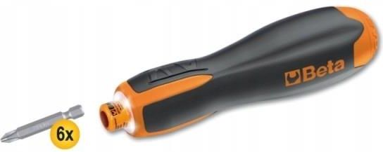 Wkrętak elektryczny Evox-E Funkcjonalne, ergonomiczne wkrętaki BETA EVOX-E teraz również w wersji akumulatorowej. Praktyczność: zmniejszone wymiary i LED z przodu sprawiają, że jest on doskonały do użytku w słabo oświetlonych miejscach o ograniczonej przestrzeni. Doskonały chwyt: wkrętak dobrze leży w dłoni i pozwala na pewny, wygodny chwyt, zarówno przy pracy elektrycznej jak i ręcznej, co przekłada się na mniejsze zmęczenie dłoni i nadgarstka. Uniwersalność: produkt ten spełnia różne potrzeby; jest dostarczany w etui do noszenia na pasku, w zestawie z 5 końcówkami wkrętakowymi o długości 50 mm z różnymi profilami. Ponadto, może być używany z wszystkimi końcówkami wkrętakowymi z zabierakiem sześciokątnym ¼”. ​​Dane techniczne: akumulator litowy 3.7V 2300mAh Moment maksymalny w trybie pracy z napędem elektrycznym: 1.2 Nm Ponad 1,000 dokręceń śruby z momentem 1.2 Nm na jednym ładowaniu Prędkość obrotowa: 250 rpm Wyjątkowa wytrzymałość statyczna (do 12 Nm, dokręcanie ręczne) Wyjątkowa wytrzymałość mechaniczna Uchwyt magnetyczny 1/4" Pasuje do wszystkich standardowych bitów Ładowanie przewodem z wtyczką USB-C (w zestawie) Gniazdo USB-C chronione zakrętką Pierścień diod LED poprawia widoczność obszaru pracy Sygnalizacja zakończenia ładowania stałym światłem LED Ergonomiczna poliamidowa rękojeść inspirowana wkrętakami Evox Wbudowany i uszczelniony przycisk sterujący Wygodna kieszeń na pas z przegródkami na bity (w zestawie 6 różnych bitów długości 50-mm)