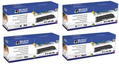 Komplet 4 tonerów marki BLACK POINT (i HP Q3960A, Q3961A, Q3962A, Q3963A) do drukarek Hewlett Packard COLOR LaserJet: - 1500, 1500L, 1500N, 1500TN, 2500, 2500L, 2500LSE, 2500N, 2500TN - 2550, 2550 L, 2550 LN, 2550 N - 2820, 2820 AIO, 2840, 2840 AIO - Canon Laserbase MF 8180 C, Canon Lasershot LBP-5200, Canon Lasershot LBP-5200 N, Canon LBP-5200, - Canon Color Imageclass MF 8170 C, Canon Imageclass MF 8170 C, Canon LBP-2410, Canon LBP-87 4 KOLORY CYAN/MAGENTA/YELLOW/BLACK Wydajność: BLACK - 5000 stron, COLOR - 4000 stron form. A4 przy 5% pokryciu drukiem. Tonery laserowe Black Point 30 % niższa cena zakupu w stosunku do oferty producentów drukarek - Wysoka jakość, wydajność oraz pełne bezpieczeństwo użytkowania Firma produkująca markę Black Point obecna jest na rynku od 18 lat. Posiada certyfikaty jakości ISO 9001 od 2002 roku oraz certyfikat ISO 14001 od 2006r. Tonery marki Black Point testowane ze standardem pomiaru wydajności ISO 19752, czyli tym samym co produkty producentów drukarek Produkowane są z wykorzystaniem nowoczesnych urządzeń oraz wysokiej jakości nowych komponentów. Wysoka jakość wydruków potwierdzona jest referencjami od wielu zadowolonych użytkowników , a także niezależnymi testami w USA oraz w laboratorium magazynu komputerowego """"""""Chip"""""""" Pełne bezpieczeństwo użytkowania gwarantuje dożywotnia gwarancja na produkt oraz drukarkę. Program """"""""Satysfakcji Gwarantowanej"""""""" Producent Black Pointa gwarantuje, że w przypadku braku satysfakcji użytkowania produktów Black Point, przekaże do użytkownika nowy produkt. Użytkownicy produktów Black Point mają dostęp do bezpłatnej infolinii Black Point 0800 166 054
