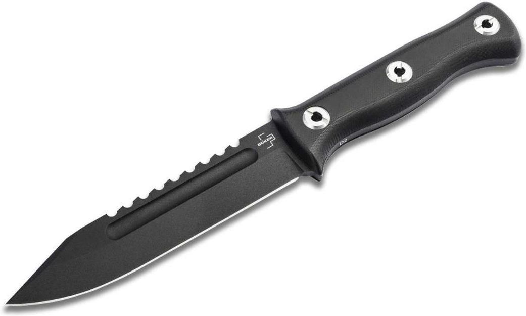 Nóż Boker Plus Pilot Knife 2.0 (02BO115) Typ noża: Z głownią stałą Styl: Militarno-taktyczny Długość głowni: 140 mm Grubość głowni: 5 mm Profil głowni: Clip-Point Rodzaj ostrza: Gładkie + ząbkowane Gatunek stali: D2 Odporność na stępienie: Dobra Odporność na korozję: Wysoka Sposób otwierania: …