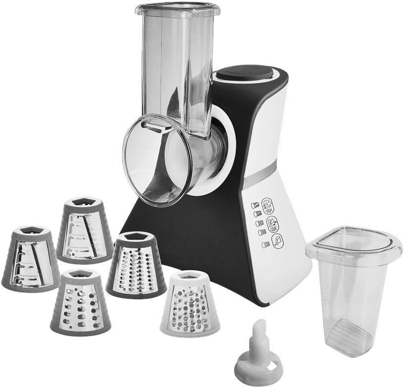 Praktyczna i łatwa w obsłudze szatkownica wielofunkcyjna do gotowania i pieczenia. Z pięcioma bębnami trącymi i szatkującymi w zestawie.