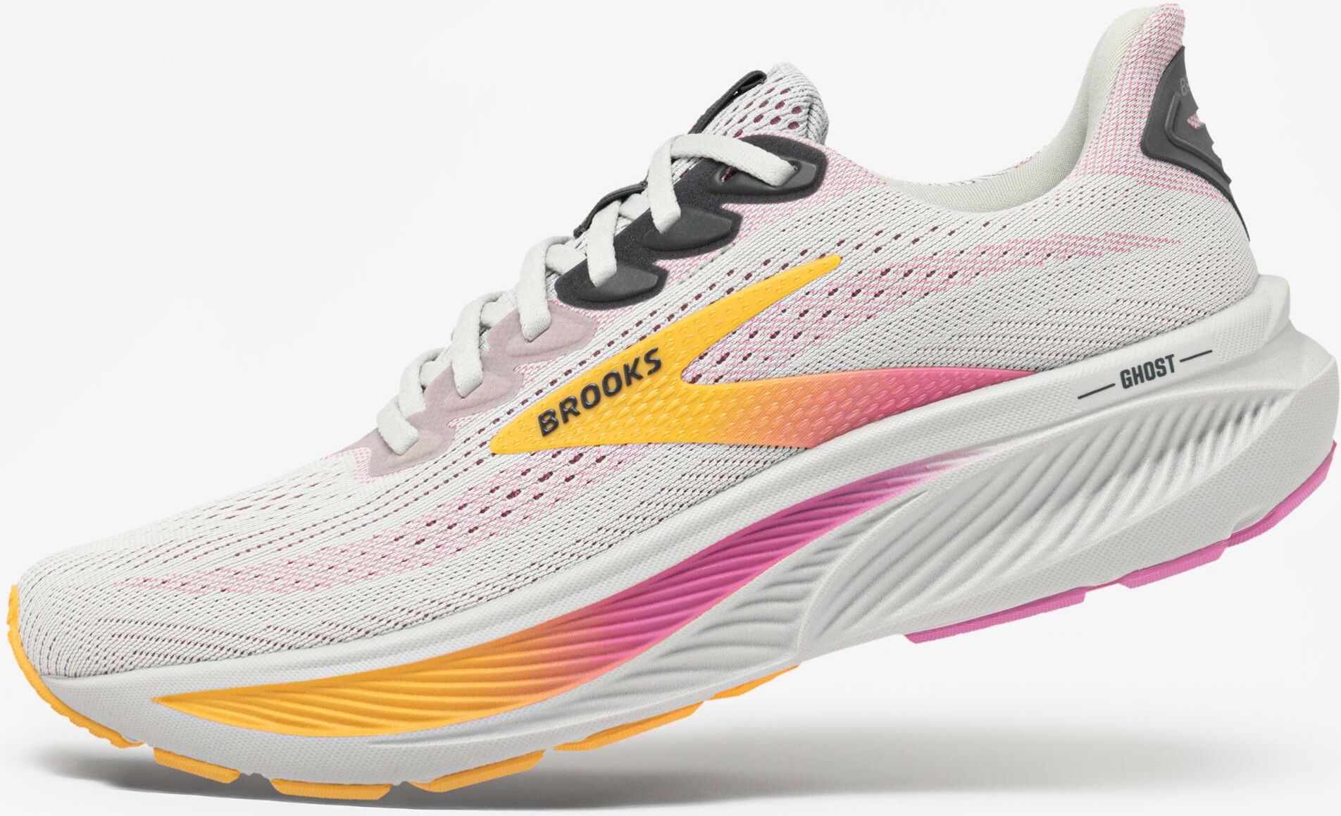 Kultowy i uwielbiany przez biegaczy Brooks Ghost wraca w nowej odsłonie. Ghost 17 to jeden z najbardziej uniwersalnych modeli butów marki Brooks. Będzie idealnym wyborem na treningi o zróżnicowanej długości i planowanym tempie. Wyposażony jest w DNA LOFT v3, która zapewnia miękką i gładką amortyzację, dostosowującą się do Twojego kroku oraz zaufane, pewne dopasowanie. Efektem tego jest bieg bez żadnych rozproszeń. Dzięki temu możesz skupić się w pełni na swoim treningu. Uniwersalne i dopasowane. Miękka i dynamiczna amortyzacja Amortyzacja DNA LOFT v3, wzbogacona azotem, zapewnia lekką miękkość i komfort, kilometr po kilometrze. Płynne przejścia Nowozaprojektowana podeszwa środkowa łączy się z precyzyjnymi rowkami elastycznymi, aby wspierać płynność przejścia do odbicia palców. . Oddychająca i wygodna cholewka Cholewka wykonana z siatki meshowej, która gwarantuje dobrą oddychalność buta, przy zachowaniu trwałości wykonania. DLA KOGO: Brooks Ghost 17 jest uniwersalnym butem treningowym, który będzie dobrym wyborem dla większości biegaczy szukających niezawodnego obuwia na zróżnicowane treningi biegowe. DODATKOWE KORZYŚCI Zwiększona amortyzacja względem poprzednika sprawi, że bieganie w tym modelu będzie jeszcze bardziej komfortowe, a przetoczenie stopy jeszcze bardziej płynne.