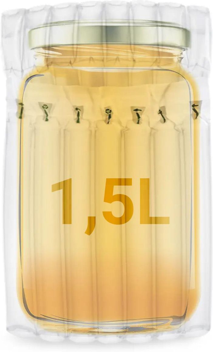 Bublaki BAB-10_60 - Zabezpieczająca pompowana (nadmuchiwana) foliowa torba przeznaczona dla słoika półtoralitrowego. Wysokość: 22cm. Średnica: 10cm.