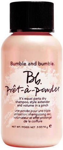 Bumble and Bumble Prêt-à-powder – suchy szampon w pudrze 14g Bumble and Bumble Prêt-à-powder – to przezroczysty puder, który może być stosowany zarówno jako suchy szampon jak i produkt do stylizacji włosów! Świetnie pochłania nadmiar sebum ze skóry głowy i jednocześnie podnosi włosy u nasady. Mieszanka glinki i mączki owsianej sprawia, że Prêt-à-powder wygląda jak suchy szampon, a mikroskopijne cząsteczki krzemionki tworzą objętość i wytrzymałość. Idealnie nadaje się również do odnawiania fryzury z dnia poprzedniego. Świetnie sprawdzi się również podczas plecenia warkoczy o grubej objętości czy upięć, którego główną domena ma być burza włosów. Bumble and Bumble Prêt-à-powder - działanie: pochłania nadmiar sebum; unosi włosy u nasady; nie pozostawia osadu na włosach; nie tworzy nieprzyjemnej „piaskowej” warstwy na skórze głowy; bezpieczny dla włosów farbowanych i cienkich. Bumble and Bumble Prêt-à-powder - zastosowanie: Dla każdego rodzaju włosów. Format podróżny. Bumble and Bumble Prêt-à-powder - sposób użycia: Wstrząśnij opakowaniem. Nałóż na skórę głowy, wmasuj i gotowe! Aby osiągnąć jeszcze lepsze efekty, podziel włosy na sekcję i użyj produktu na każdej z nich. Jeżeli wolisz tradycyjny suchy szampon wypróbuj Prêt-à-powder Tres