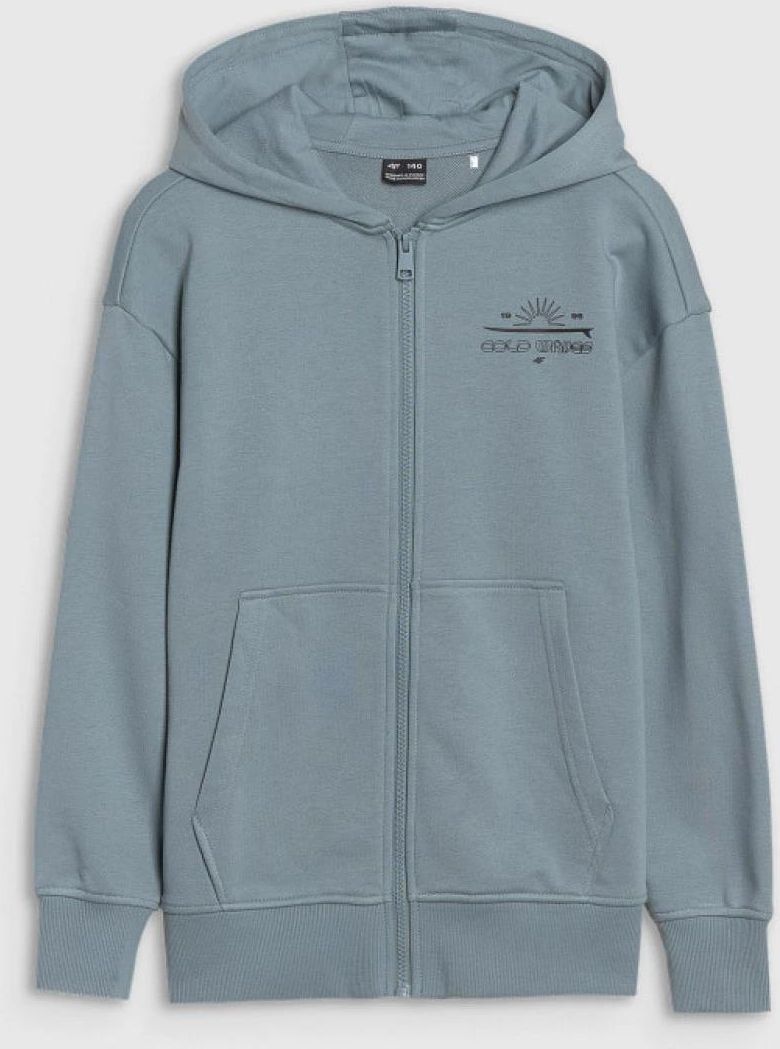 Chłopięca bluza dresowa z kapturem rozpinana 4F 4FJWSS25TSWSM1522 - turkusowa Wrocław