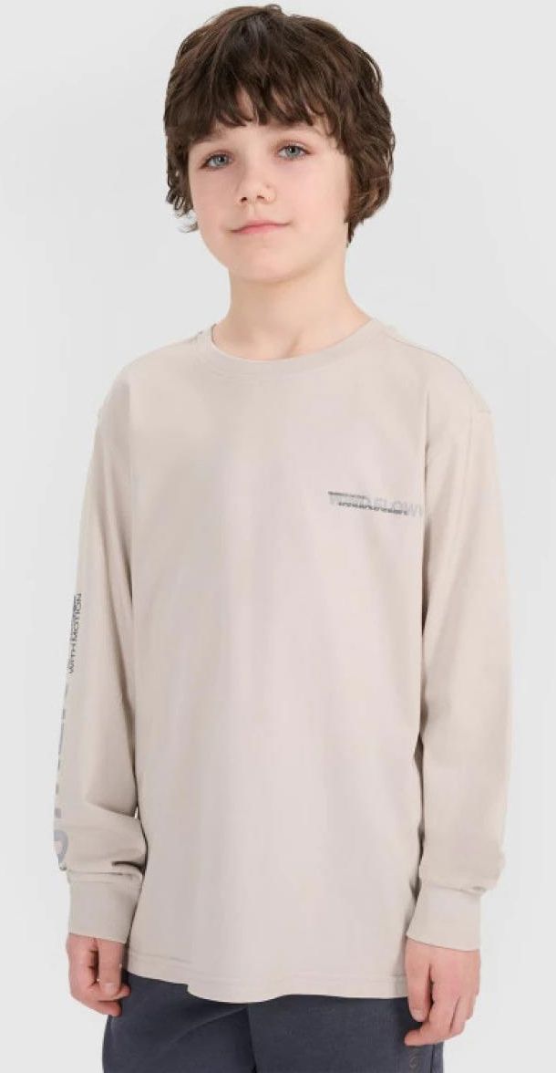 Chłopięcy longsleeve z nadrukiem 4F 4FJWSS25TLONM380 - beżowy Wrocław
