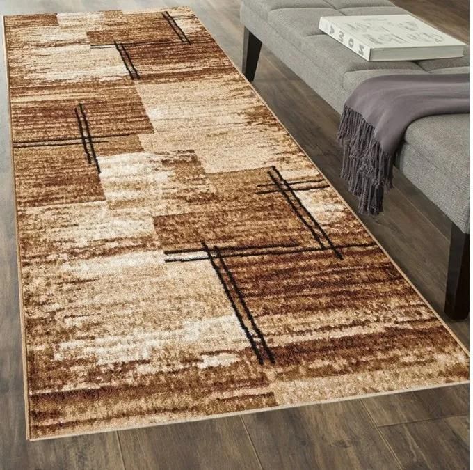 Dywan Chodnik PP new 018 Beige z kolekcji PP to prawdziwa perełka dla miłośników nowoczesnego designu. Jego głównym kolorem jest beż, który nadaje wnętrzu ciepła i przytulności. Wzór dywanu jest wyjątkowo interesujący - składa się z szerokich, poziomych pasów, które przeplatają się ze sobą, tworząc efekt głębi i ruchu. Brązowe pasy są intensywne i kontrastują z jaśniejszymi beżowymi oraz szarymi fragmentami, co dodaje dywanowi charakteru i elegancji. Dywan ma prostokątny kształt, co sprawia, że idealnie nadaje się do wąskich przestrzeni, takich jak przedpokoje czy korytarze. Nie posiada frędzli, co dodaje mu nowoczesnego wyrazu. Jeśli szukasz inspiracji na urządzenie wnętrza z tym dywanem, wyobraź sobie minimalistyczny salon z meblami w odcieniach szarości i drewna. Dywan Chodnik PP new 018 Beige świetnie skomponuje się z szarym narożnikiem oraz drewnianym stolikiem kawowym. Na ścianach mogą wisieć obrazy w neutralnych tonacjach, a na parapecie kilka roślin doniczkowych, które dodadzą życia i świeżości. W takim wnętrzu dywan będzie centralnym punktem, który przyciąga wzrok i harmonizuje całość. Możesz również wykorzystać go w sypialni, gdzie jego ciepłe barwy stworzą przytulną atmosferę, idealną do relaksu. Umieszczony przy łóżku, będzie nie tylko praktyczny, ale i estetyczny, dopełniając wystrój w stylu skandynawskim czy loftowym. Zdecydowanie warto zainwestować w Chodnik PP new 018 Beige, szczególnie jeśli jesteś osobą ceniącą sobie nowoczesny design i funkcjonalność. Ten dywan przypadnie do gustu osobom, które lubią neutralne, ale wyraziste wnętrza, oraz tym, którzy szukają eleganckiego akcentu do swoich przestrzeni. Jego uniwersalność sprawia, że pasuje zarówno do mieszkań, jak i domów, dodając im stylu i klasy. Nie zwlekaj, wybierz Chodnik PP new 018 Beige i odmień swoje wnętrze! Niska cena sprawia, że popularność tych chodników ciągle wzrasta. Nowoczesne techniki tkania i dobrej klasy surowce podnoszą dodatkowo wartość estetyczną chodnika oraz jego wytrzymałość na ruch. Przyjemne i ciepłe, pastelowe kolory sprawiają, że są one chętnie kupowane przez naszych klientów i skutecznie konkurują z innymi chodnikami. Masowa produkcja tych chodników sprawia, że są one łatwo dostępne, mają przystępną cenę i duży wybór wzorów i kolorów. PP BCF - Włókna syntetyczne są najpopularniejszym surowcem do produkcji chodników. Znakomicie poddają się wszelkim zabiegom czyszczącym w tym praniu szamponem i odkurzaniu. Chodnik po zakupie będzie obszyty z dwóch stron - obszycie GRATIS.
