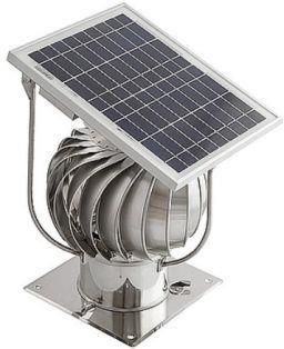 Obrotowa nasada kominowa Turbowent Solarny jest urządzeniem dynamicznie wykorzystującym siłę wiatru do wspomagania ciągu kominowego w przewodach wentylacyjnych. To, co wyróżnia ją spośród innych, to fakt, iż wyposażona jest w silnik elektryczny i panel fotowoltaiczny. Pozwala to na zwiększenie ciągu kominowego także bezwietrzne, ale słoneczne dni, jako, że panel wytwarza energię elektryczną wykorzystywaną przez silnik do napędu głowicy nasady.Nasada montowana jest bezpośrednio na kominie i nie wymaga przeprowadzania żadnych przewodów elektrycznych. Istnieje możliwość bardzo łatwego ustawiania nasady w kierunku słońca bez używania narzędzi. ZASTOSOWANIE: do wspomagania wentylacji grawitacyjnej wywiewnej do tworzenia energooszczędnych systemów wentylacji grawitacyjnej wspomaganej mechanicznie kiedy występują zawirowania powietrza na wylocie komina spowodowane jego niekorzystnym usytuowaniem przy niekorzystnej konfiguracji terenu, silnych i częstych wiatrach (II i III strefa obciążenia wiatrem) do wentylacji poddaszy do wspomagania wentylacji w budynkach okresowego przebywania (domy letniskowe) Inne wersje podstaw - na zamówienie Uwaga! Wersja 35˚ jest optymalnie dobrana do kąta padania promieni słonecznych w Polsce. Nie wymaga stosowania zasilacza i regulatora.