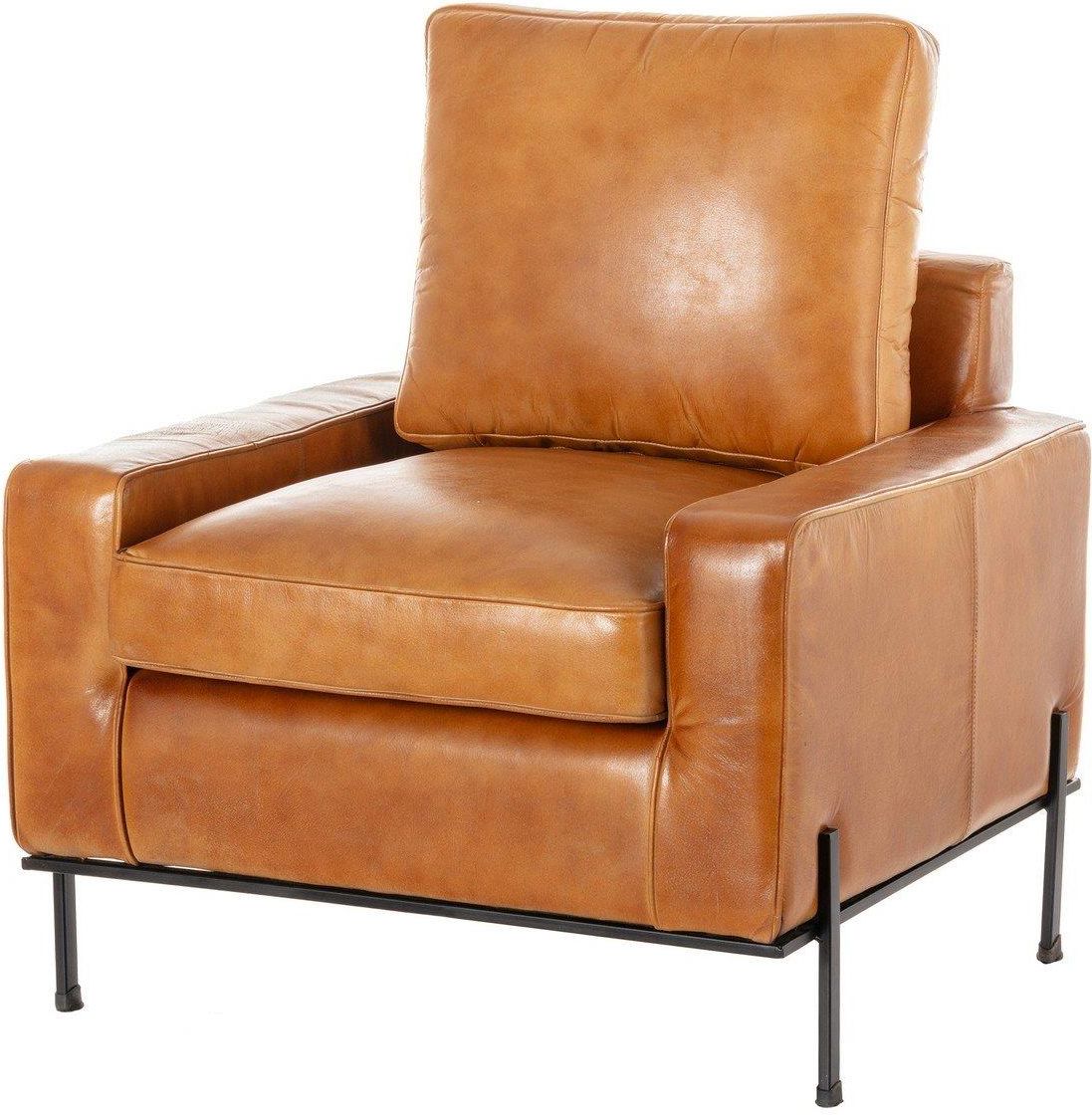 Fotel ze skóry na metalowym stelażu. Fotel skórzany osadzony na metalowej konstrukcji w kolorze czarnym. Wygodne siedzisko i oparcie tworzą nowoczesną, spójną całość idealną do wnętrz urządzonych w stylu industrialnym czy loftowym. Fotel Evra to funkcjonalny, a zarazem designerski mebel do salonu lub gabinetu, który podkreśli wyraźny charakter Twojego wnętrza. Fotel Evra gwarantuje codzienny komfort i elegancki wygląd Bawola skóra oraz metalowa konstrukcja to wyjątkowe połączenie, które doskonale komponuje się z innym wyposażeniem w stylu nowoczesnym. Podkreśl swoje wnętrze w nowoczesny sposób i sprawdź również nasze pozostałe meble skórzane idealne do Twojego wnętrza. Wymiary: szer. 80 cm, gł. 80 cm, wys. 94 cm, siedzisko: 55 cm, gł. 52 cm, wys. 49 cm. Materiał: naturalna skóra bawola / metal. Kolor: brązowy / czarny.