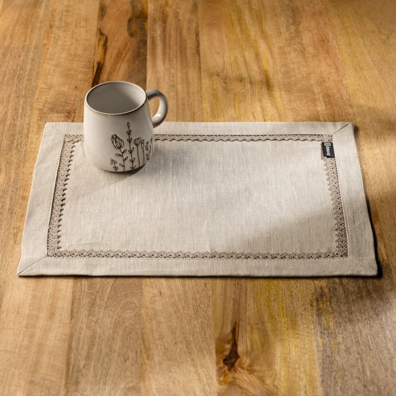 Lniane podkładki na stół z koronką. Wprowadź do swojej jadalni naturalny urok i ponadczasową elegancję dzięki lnianym podkładkom na stół ozdobionym subtelną koronką. Dostępne w dwóch odcieniach naturalnego lnu – jaśniejszym i ciemniejszym – idealnie wpisują się w estetykę stylu rustykalnego, boho czy skandynawskiego. Delikatna koronka dodaje całości lekkości i romantycznego charakteru. Te dekoracyjne podkładki nie tylko chronią powierzchnię stołu, ale również pięknie eksponują nakrycia i wprowadzają wyjątkowy klimat podczas codziennych posiłków oraz spotkań w gronie bliskich. Wykonane z naturalnego lnu, są trwałe, estetyczne i przyjazne środowisku. Zestaw zawiera 2 podkładki o wymiarach 30x40 cm. Wymiary produktów wykonanych z tkanin objęte są tolerancją w granicach +/- 2 cm na długości i szerokości. Margines błędu w wymiarach jest wynikiem właściwości materiału.