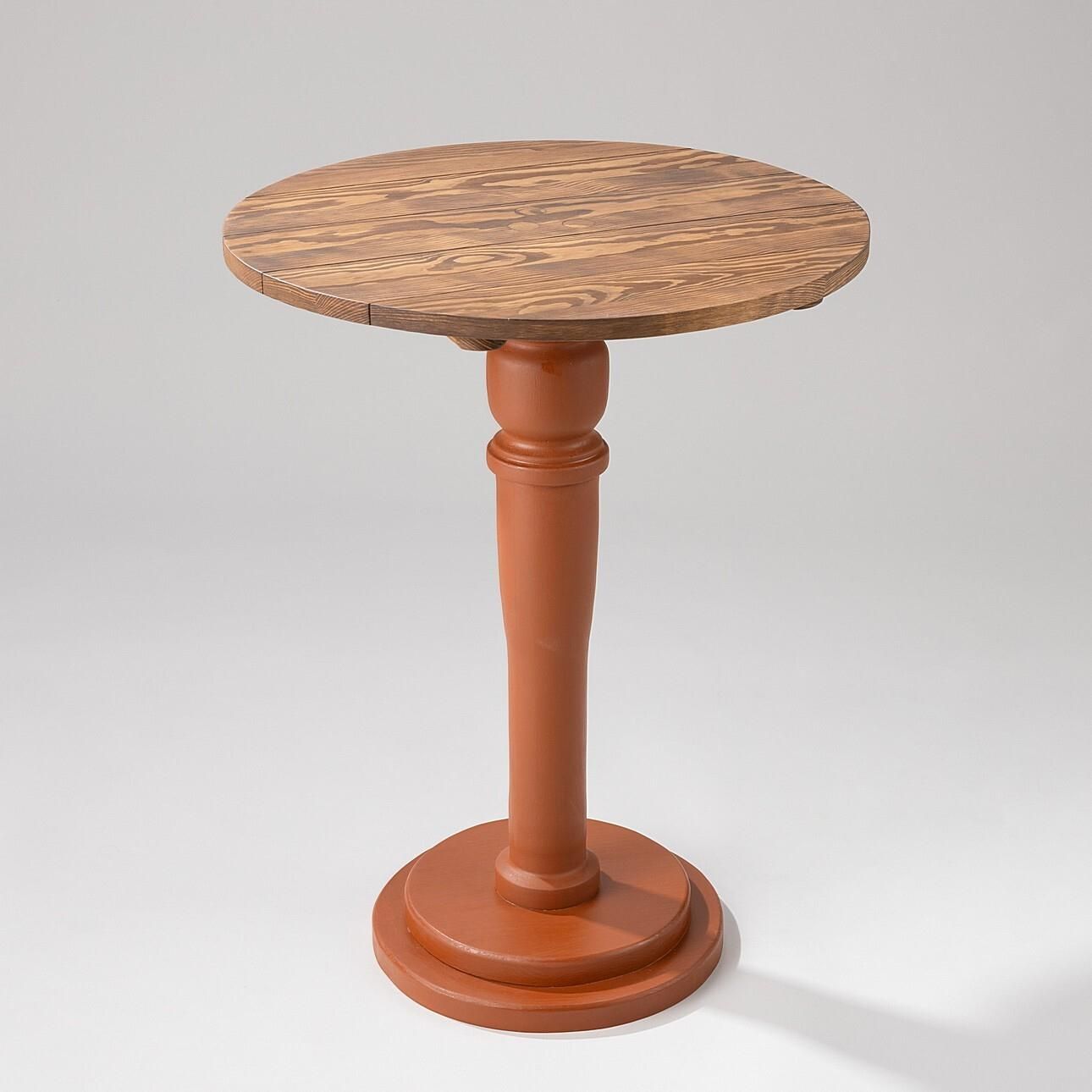 Okrągły stolik kawowy z drewnianym blatem i dekoracyjną podstawą. Ten elegancki stolik kawowy Elina to doskonały wybór dla miłośników przytulnych, klasycznych wnętrz z nutą romantycznego klimatu. Okrągły blat wykonany z litego drewna sosnowego zachwyca naturalnym usłojeniem i ciepłym, brązowym wybarwieniem, które pięknie eksponuje strukturę drewna. Solidna, toczona noga została pomalowana na głęboki, rdzawo-czerwony odcień. To idealny mebel do wnętrz urządzonych w stylu prowansalskim, rustykalnym czy boho, stanowiąc subtelny akcent w salonie, oranżerii czy kąciku wypoczynkowym. Doskonale prezentuje się w towarzystwie wygodnego fotela, lnianych zasłon i stylowych dodatków. Dzięki kompaktowym rozmiarom mebel sprawdzi się również w mniejszych przestrzeniach – jako stolik pomocniczy, nocny stolik przy łóżku czy miejsce na ulubioną filiżankę kawy przy oknie. Zaproś do swojego wnętrza klimat południowej Francji – postaw na ten wyjątkowy stolik i ciesz się funkcjonalnym pięknem na co dzień! Wymiary: średnica 60 cm, wys. 79 cmKolor: brązowy, rdzawo-czerwonyMateriał: drewno sosnoweWaga: 10 kg