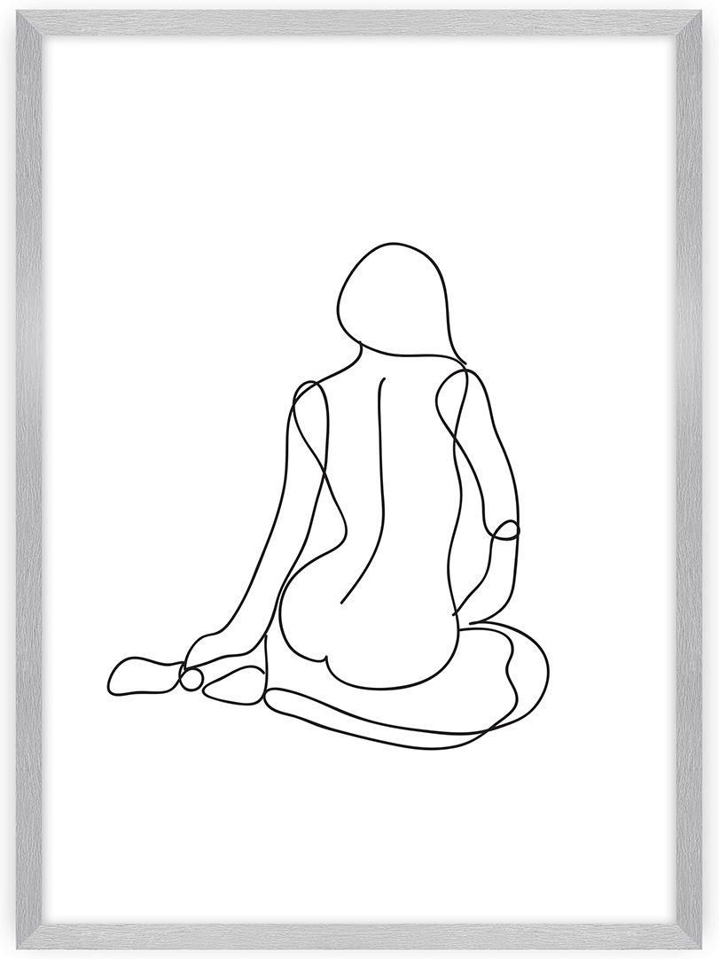Minimalistyczny plakat z wizerunkiem kobiecej sylwetki, namalowanej czarnymi liniami. Linie podkreślają powabność kobiecego ciała. Artystyczna konwencja, w której podziwiać można kobiece piękno w czystej formie.Prostota projektu nadaje mu eleganckiego, skandynawskiego charakteru. Będzie perfekcyjnie wyglądał powieszony w sypialni czy salonie. Doskonały pomysł na prezent.Grafika wydrukowana została na papierze satynowym bez połysku o gramaturze 200g.Plakat można kupić bez ramki, jednak dla uzyskania lepszego efektu dobierz pasującą ramkę. Pozwoli Ci to na stworzenie kompletnej galerii na ścianie.W naszej ofercie posiadamy ramki w kolorze: białym, czarnym, srebrnym i złotym. Ramki dostępne są w pięciu rozmiarach. Rozmiary 21x30cm, 30x40cm, 40x50cm wykonane są z tworzywa sztucznego. Rozmiary 50x70cm i 70x100cm wykonane są z aluminium.