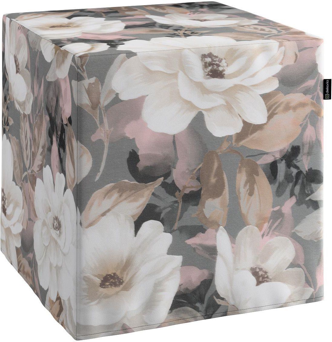 Dekoria Pufa kostka kremowe i różowe kwiaty na szarym tle 40×40×40 cm Gardenia Wrocław