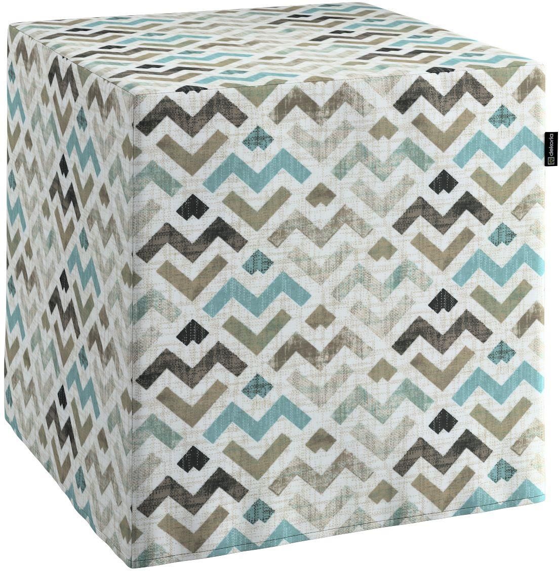 Dekoria Pufa kostka wzór geometryczny w odcieniach pastelowego błękitu i beżu na jasnym tle 40×40×40 cm Modern Wrocław