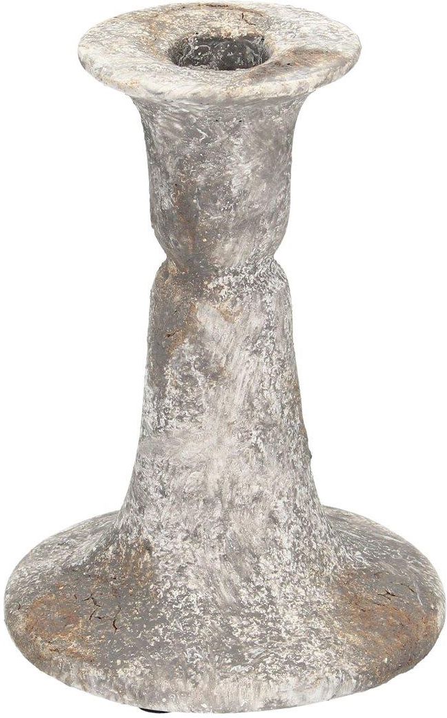 Stylizowany świecznik w kolorze szarym z przetarciami.Świecznik to doskonały dodatek do wnętrza. Dzięki umieszczonej w nim świecy uzyskasz nastrojowy klimat. Ten oryginalny akcent nada wnętrzu charakteru, a surowy i minimalistyczny design doskonale sprawdzi się we wnętrzach urządzonych w stylu vintage i rustykalnym.Świecznik na jedną długą świecę o śr. 2,2 cm. Wymiary: śr. 11 cm, wys. 15,5 cm.