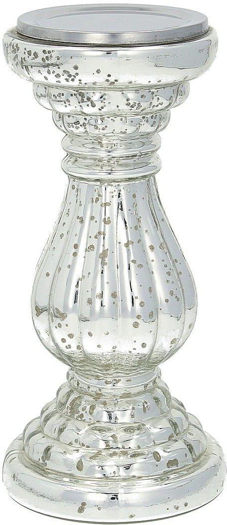Świecznik Jordie 23cm, 11 x 23 cm Kod produktu: 813-133 Elegancki świecznik na jedną świeczkę, wykonany ze szkła w srebrnym kolorze. Przeznaczony na grubą świecę. Poprzez ozdobną formę i połyskującą powierzchnię, wniesie do wnętrza szyk i elegancję. Pięknie zaprezentuje się we wnętrzach w stylu glamour oraz klasycznych. Dane produktu Waga: 0.65kg Rozmiar: 11 x 23 cm Materiał: szkło Kolor: srebrny