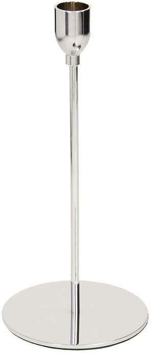 Metalowy świecznik w kolorze srebrnym. Romantyczna kolacja we dwoje, rodzinny obiad lub celebrowanie świąt przy wspólnym stole? Elegancki świecznik wykonany z metalu w uniwersalnym kolorze, wspaniale dopasuje się jako uzupełnienie aranżacji Twojego stołu. Srebrny kolor nada szyku i elegancji, dodatkowo podkreślając uroczystość okazji. Świecznik przeznaczony na jedną, długą świeczkę.Doskonale zaprezentuje się w komplecie innych świeczników z tej serii.