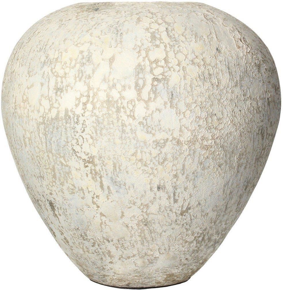 Wazon z terakoty i gliny w jasnobeżowym kolorze z przetarciami. Gustowny wazon dekoracyjny wykonany z terakoty w jasnobeżowym kolorze stylizowany na antyczny artefakt. Piękne przetarcia harmonizują z jego klasyczną formą i nieszablonowym designem. Wazon Larisa wspaniale zaprezentuje się jako samodzielny dodatek do wnętrza lub eksponując roślinne dekoracje jak trawa pampasowa, kwiaty czy suszone gałęzie. Sprawdź ofertę na wyjątkowe wazony i udekoruj swój dom w swoim ulubionym stylu. Wymiary: śr. 29 cm, wys. 29 cm.