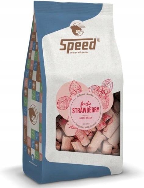 PRZYSMAK DLA KONI Speed Strawberry Truskawka 1 kg SPEED delicious speedies Strawberry to pyszny sposób na nagrodzenie Twojego konia. Delicious speedies to idealny produkt, który doskonale sprawdzi się jako nagroda podczas treningów, nauki nowych rzeczy, ale także jako sposób na przywitanie się z Twoim pupilem. Cukierki nie są klejące, nie kruszą się co czyni je świetnym kompanem do podróży. Ich słodki aromat i wyśmienity smak, że szybko staną się one ulubionymi przysmakami Twojego konia. W przeciwieństwie do marchewki czy jabłek, pyszne speedies długo zachowują świeżość. Są one praktyczne i łatwe do przechowywania. Specjalny suplement paszowy stworzony po to, aby dać twojemu ukochanemu podopiecznemu słodką nagrodę lub po prostu okazać miłości. Cukierki zostały wykonane z najlepszych składników. Skład: Otręby pszenne, otręby z łuski owsa, jęczmień, kukurydza, węglan wapnia, melasa, proszek z buraków, 0,1% Wytłoki truskawkowe Składniki analityczne Białko surowe: 10,3% Tłuszcz surowy: 3,3 % Włókno surowe: 11,1% Surowy popiół: 12,3 % Wapń: 3,19 % Fosfor: 0,51% Sód: 0,09% Uwaga: Przechowywać w chłodnym, suchym miejscu z dala od światła słonecznego.