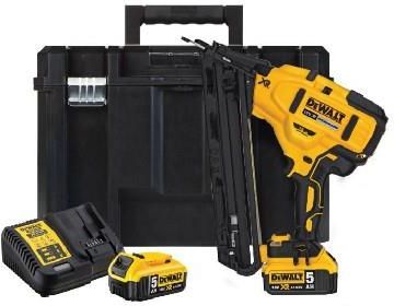 akumulatorowa sztyfciarka/gwoździarka do wykończeń DCN650P2 przeznaczona do różnych pracach wykończeniowych z drewnem, czy materiałem drewnopodobnym, bardzo łatwa beznarzędziowa regulacja głębokości wbijania sztyftów, wskaźnik awarii (rozładowany akumulator bądź zakleszczony gwóźdź), gwoździarka ta nazywana jest również sztyfciarką ze względu na typ gwoździ podobnych budową do sztyftów, sztyfciarka DCN650 w stopie posiada dwie mocne diody oświetlające miejsce pracy, dla większej wygody wyposażona została w dwa tryby pracy wbijane pojedynczo lub w serii sekwencyjnie, sztyfciarka wyposażona została w zabezpieczenie plastikowe nałożone na element stykający się z mocowanym materiałem w celu zabezpieczenia przed uszkodzeniem mocowanego materiału. Dostarczane są 3szt. takiego zabezpieczenia, gwoździarka DCN650P2 dostarczana jest z dwoma akumulatorami 5,0Ah i ładowarką wielonapięciową. Całość pakowana jest w systemowej walizce TStak VI DCN650 ma magazynek ustawiony pod kątem 34º, dostępne są na rynku sztyfty nieocynkowane, ocynkowane ogniowo lub nierdzewne, Akumulatorowa sztyfciarka/gwoździarka ma zdecydowana przewagę nad urządzeniami gazowymi czy pneumatycznymi - przede wszystkim niższe koszty eksploatacji, nie ma potrzeby kupowania naboi gazowych czy posiadania kompresora. Sprawdź maszynę w pracy! Wyposażenie gwoździarki DeWalt DCN650P2: 1 x gwoździarka DCN650, 2 x akumulator 18V Li-Ion 5,0Ah, 1 x ładowarka wielonapięciowa, odwracalny hak na pasek, 3 x plastikowa nakładka nie zostawiająca śladów na materiale, mocna walizka systemowa TStak VI, parametry techniczne gwoździarki DCN650: napięcie zasilające: 18 V, typ akumulatorów: Li-Ion, obsługiwane akumulatory: 3,0Ah / 4,0Ah / 5,0Ah / 6,0Ah / 9,0Ah / 12,0Ah, średnica gwoździ: 1,8 (15Ga) mm, długość gwoździ: 32 - 63 mm, kąt pochylenia gwoździ: 34º, pojemność magazynka: 110 szt., napełniania magazynka: od dołu, tryb pracy: dotykowy i sekwencyjny, wymiary (dł x szer x wys): 310 x 95 x 325 mm, waga: 2,6 kg,