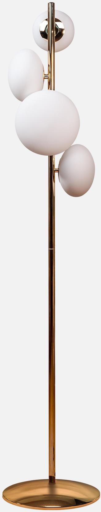 Oświetl wnętrze salonu stojącą lampą UFO, która doda nowoczesnego pierwiastka do stylizacji wnętrza. 4 mlecznobiałe klosze połączone podstawą w złotym kolorze udekorują pomieszczenie i podkreślą jego charakterystyczne cechy. Niezwykła estetyka lampy wiszącej UFO Zestawienie obłych, białych kloszy ze oprawą w złotym kolorze wpasuje się w nowoczesne wnętrze, ciążące w stronę estetyki glamour. Stojąca lampa UFO idealnie sprawdzi się w przestronnym wnętrzu salonu opodal sofy, fotela lub w towarzystwie roślin doniczkowych. Wymienne oświetlenie pozwoli ci dobrać żarówki z taką barwą światła, która najlepiej będzie pasować do wnętrza Twojego domu. Dobierz żarówki do lampy UFO Model podłogowy UFO posiada oprawę przeznaczoną dla 4 żarówek typu G9 o mocy maksymalnej 8W. Kolekcja UFO Wypróbuj lampy z rodziny UFO. Wybieraj spośród modeli sufitowych, wiszących, podłogowych oraz kinkietów. Kolekcja posiada wersje lamp wykończonych w połyskującym złocie oraz matowej czerni.