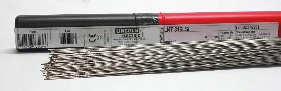 Drut Lincoln Mig 316 LSi. drut lity o bardzo małej zawartości węgla do spawania stali nierdzewnych CrNiMo. odporny na korozję międzykrystaliczną oraz korozję ogólną. DANE TECHNICZNE gatunek : 316 LSi. średnica: 2,4mm. pręt : 1000 mm. gaz obojętny Ar(100%). opakowanie 5 kg. ZALETY zwiększona zawartości krzemu dla polepszenia zwilżalności.