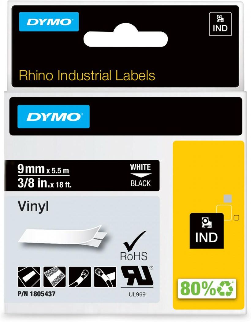 Dymo IND Rhino Taśma Winylowa Nadruk Biały Na Czarnym 9mm (1805437) Wrocław