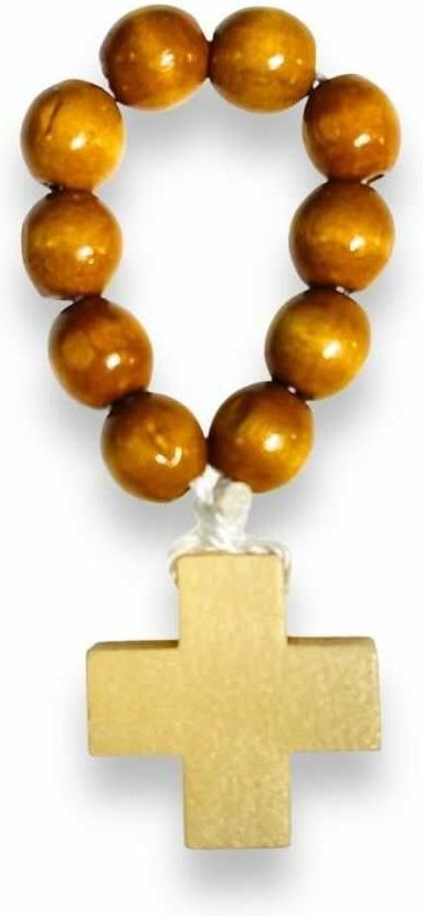 DZIESIĄTKA RÓŻAŃCA DREWNIANA NA PALEC - KOLOR JASNY BRĄZ Dziesiątka różańca na sznurku. Krzyżyk drewniany.